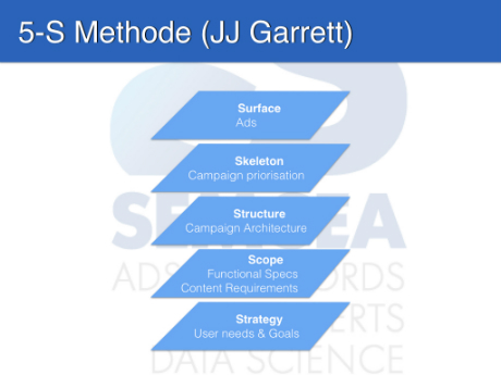Ein wesentliches Element des Erfolgs einer Google Ads Kampagne liegt in der Findung einer geeigneten und praktikablen Ads Strategie, die genau definiert, wer, wo, wie davon bedient wird. Dabei gehen wir nach der bewährten 5-S Methode von JJ Garrett vor. Um das "Wer" zu verbildlichen und damit die Planung der Strategie zu erleichtern, arbeiten wir mit sogenannten Personas.